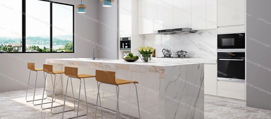 ضع في اعتبارك اللمسات النهائية الكريمية والبيج والمتألقة واللمعة للغاية وغير اللامعة وغيرها. يعتبر الرمادي والأسود أيضًا اختيارات ممتازة لأنها تجعل المطبخ يبدو عصريًا وفخمًا.
